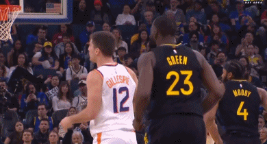 在本场比赛首节,勇士内线德雷蒙德-格林突然自爆,他先是从背后推搡了太阳后卫吉莱斯皮,随后对裁判做“技术犯规”的挑衅动作被累计2次技术犯规驱逐出场。赛后,勇士主帅史蒂夫-科尔谈到了这一话题,他表示追梦的第二次技术犯规“过于草率牵强”,并提到了前几天晚上狄龙-布鲁克斯对斯蒂芬·库里“蓄意”犯规的事件。