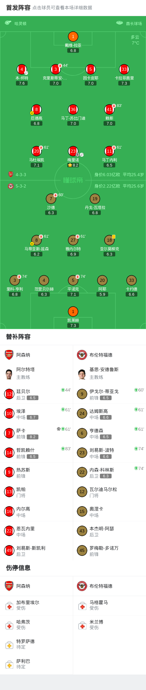 第61分钟,阿森纳换两人,萨卡和埃泽联袂登场