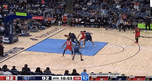 第三节灰熊阿尔达马拿下7分,开拓者格兰特拿下13分,第三节结束灰熊92-78领先开拓者